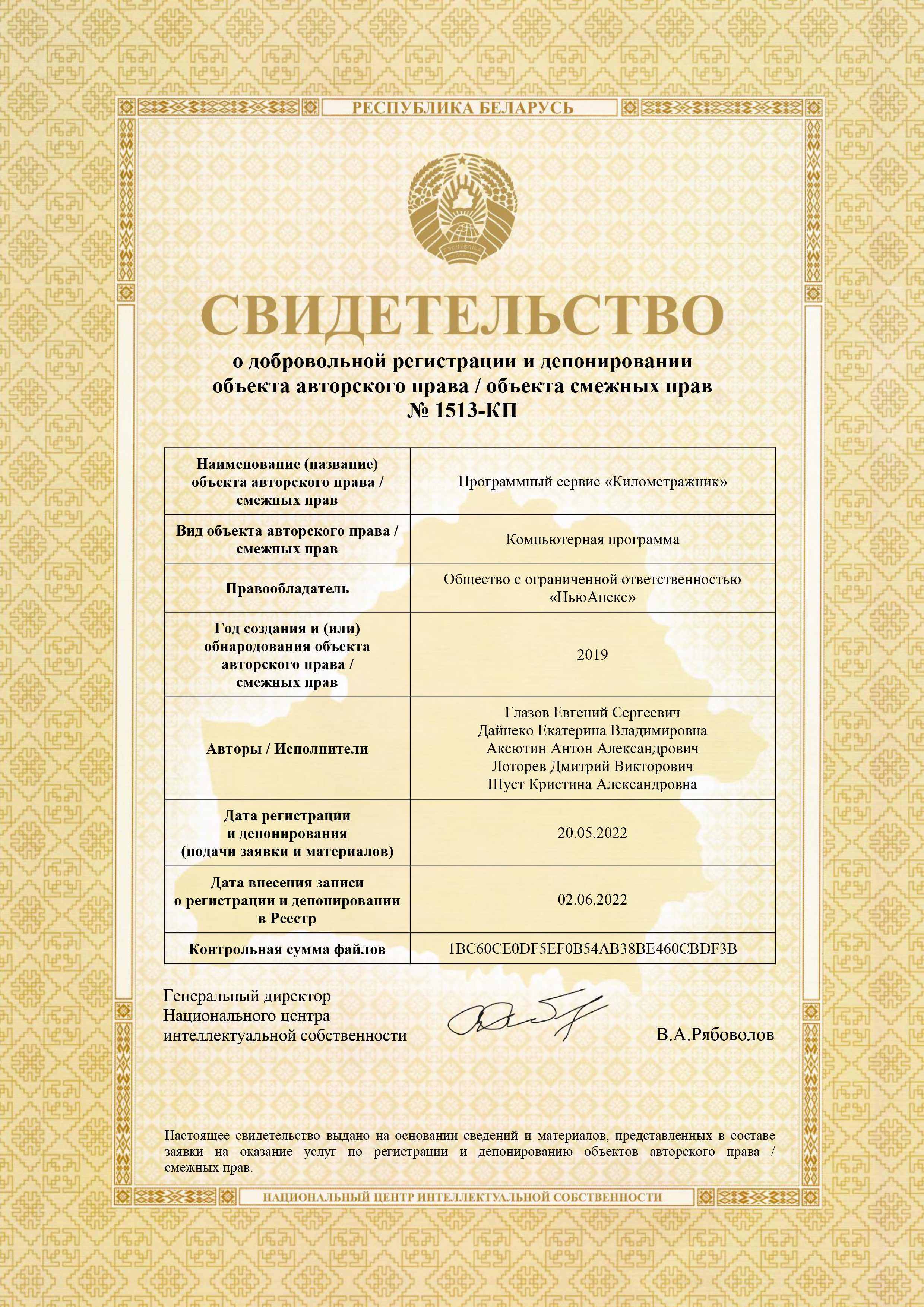 Свидетельство о добровольной регистрации и депонировании объекта авторского права.