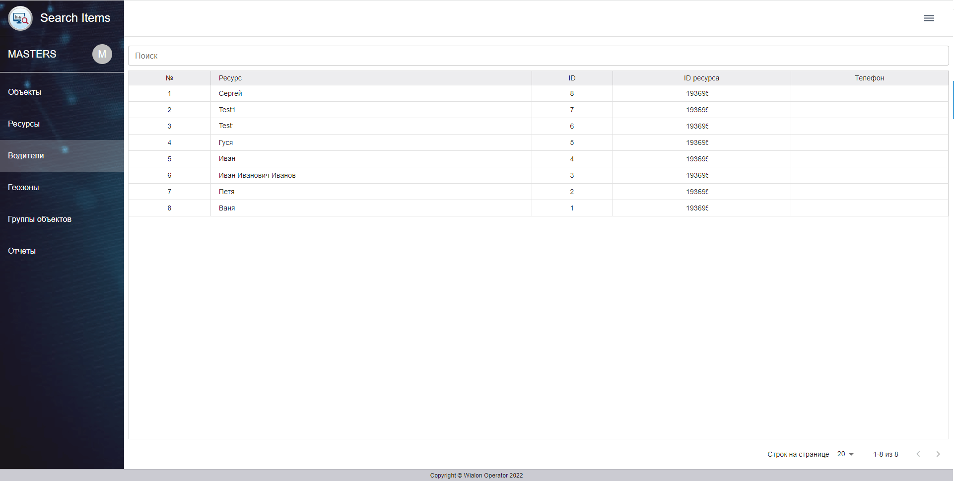 Доступ к водителям в приложении