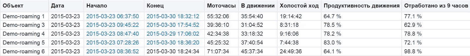 Например, в отчёте по моточасам Вам будут доступны данные: