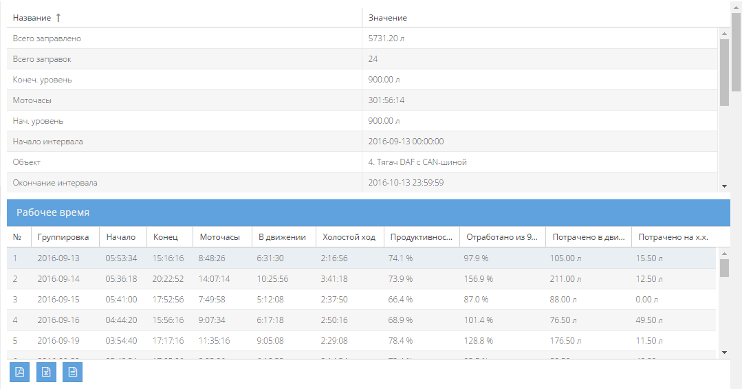 Приложение позволяет не только видеть весь автопарк в режиме реального времени, но и анализировать его работу за предыдущие периоды. На вкладке “Отчеты” вы сможете выполнить отчет по любому автомобилю или группе автомобилей и экспортировать его в формат HTML, Excel, XML, CSV.