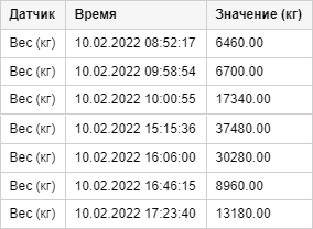Вы всегда сможете обратиться к данным в мониторинге для сверки веса фактического с тем, который указан в накладной. Данные содержат вес и время взвешивания.