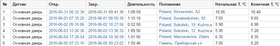 Wialon зафиксирует также факт открытия/закрытия двери, его точное местоположение, время и длительность.