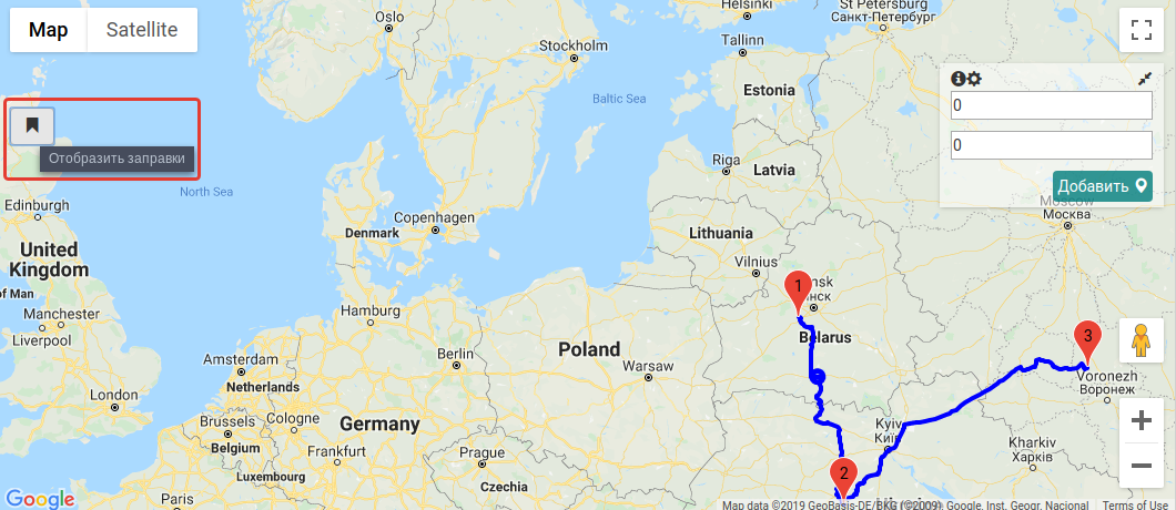 Шаг 4: Кликните на кнопку "Отобразить заправки" (скриншот ниже).
