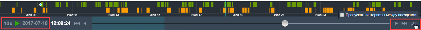 Перетаскивайте бегунок по полосе для быстрого перемещения на карте к местоположению объекта в тот или иной момент времени.