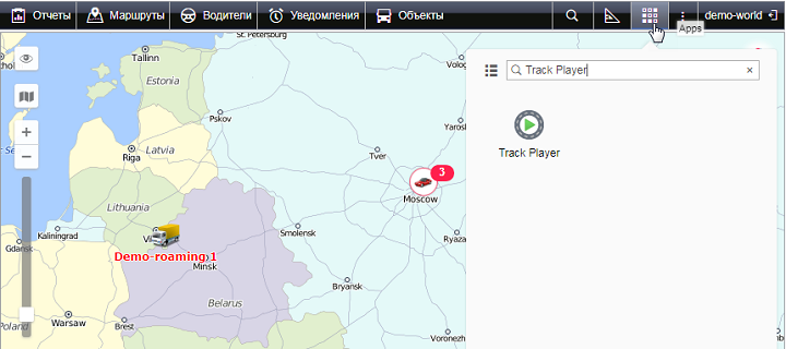 Проигрыватель треков – это бесплатное приложение, которое Вы можете найти в системе Wialon на вкладке APPS.