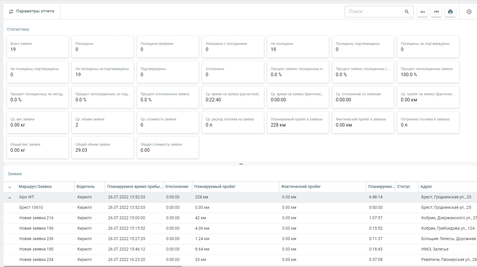 Любые отчёты настраиваемые, большой выбор целевых параметров. Большой плюс это отдельный отчёт “план-факт” поездки.