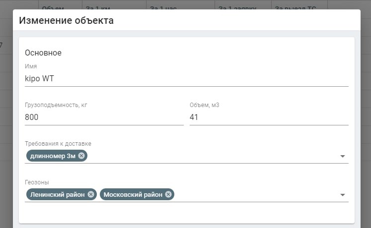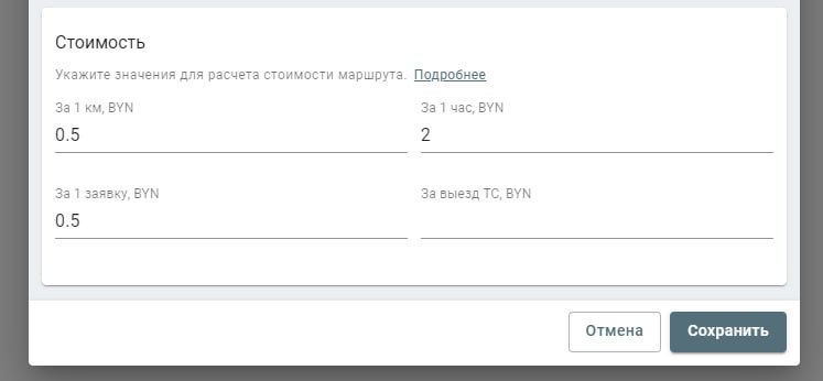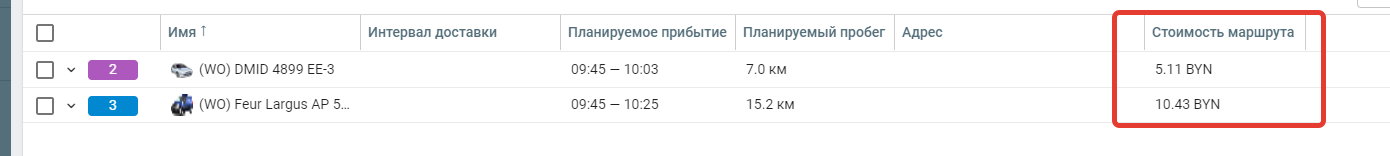 В карточке автомобиля можно указывать значения для расчёта стоимости маршрута. В итоге будет таблица со стоимостью доставки по каждой машине.