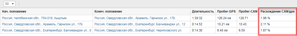 Расхождения пробегов CAN/GPS в таблице “Поездки”