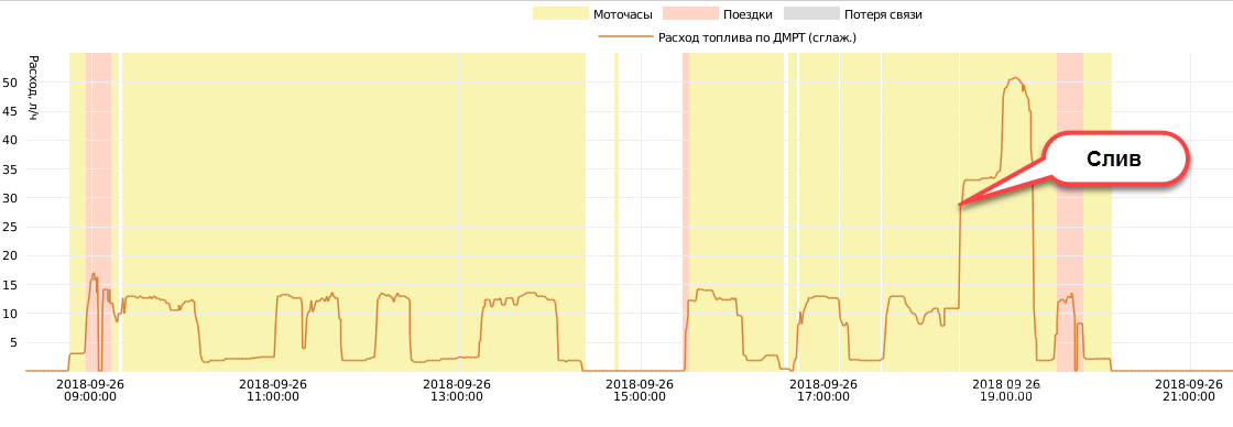 26 сентября в 18:30 видно резкое увеличение расхода топлива.