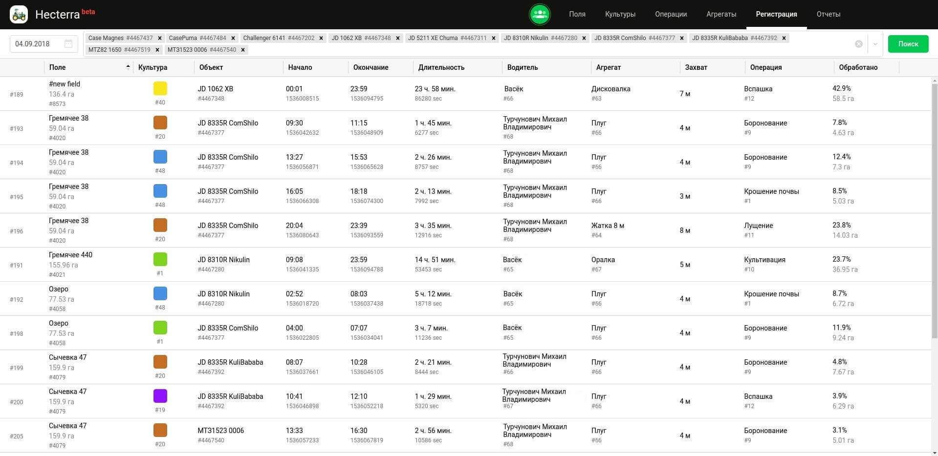 С доступом к водителям, объектам и агрегатам из NewApex. Агрегаты в новом приложении – это навесные оборудования, для каждого из которых можно задать ширину охвата в метрах (что необходимо для расчета площади) и технологическую операцию (понадобится для создания отчетов). Впоследствии внесенные данные помогут автоматизировать работу системы.