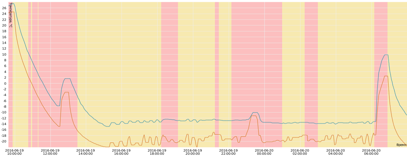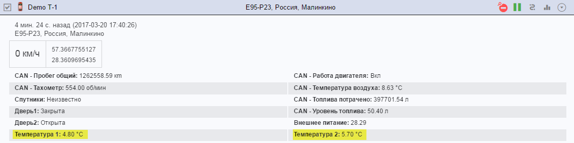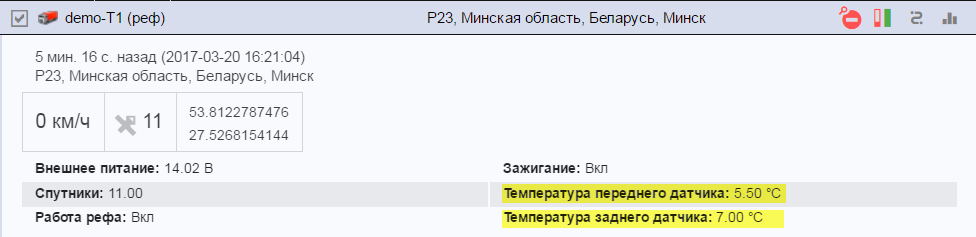 В результате подключения, в системе мониторинга Вам будут доступны данные как по уровню температуры, так и по состоянию работы рефрижератора: