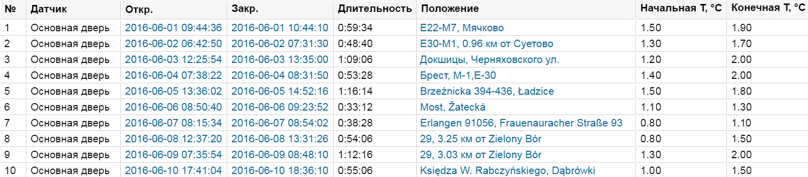 Проводной датчик температуры может работать в комплексе с датчиком открытия/закрытия двери. Так в системе NewApex Вы увидите, как часто открывались двери в процессе всего рейса, и как это повлияло на изменение температуры в рефе.